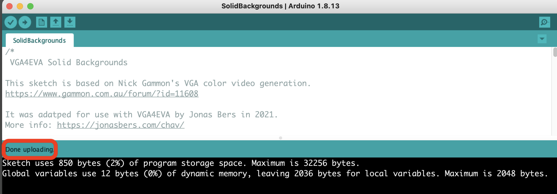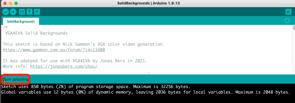 Now for the fun part! We’ll need an Arduino “sketch” in order to make VGA4EVA run. I’ll get you started with that.